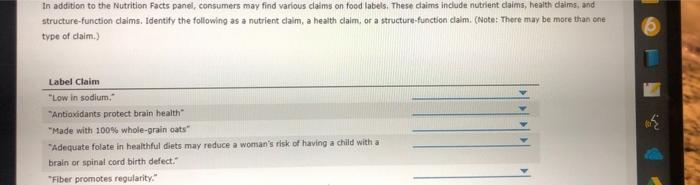 Identify categories of information found on food labels. Key Elements of a Food Label To Know | Food Labeling Info Although the FDA doesn't test the nutrition of every food product, you must report accurate information on your label. Below is a list of information that should be on your product's Principal Display Panel (the area most likely to be seen by consumers) in order to comply with labeling regulations: Food ingredients Minerals Caloric value Common Information on Food Labels - University of Kentucky There are three types of product dates that you may see listed on your food or drink item. "Sell by" tells you how long the manufacturer suggests the store should sell the food. It is important that you buy food from the store before the sell by date. "Use by" tells you how long the food will be at its peak quality. Food Labels 101: Understanding the Nutrition Facts Label Fats - Saturated and Trans If the label indicates that the food is high in saturated fat (no more than 20 grams total for the day), then it is not an ideal food for a heart healthy diet. Saturated fats can raise your low density lipoprotein, or "bad cholesterol", which can increase your risk for heart disease and stroke. Understanding Ingredients on Food Labels - American Heart Association Understanding Ingredients on Food Labels. Food labels are an important source of information about calories and the nutritional value of the foods you eat, a crucial tool in building a heart-healthy diet. The Nutrition Facts information is always displayed in the same orderly fashion and helps you understand how much of certain nutrients that ...